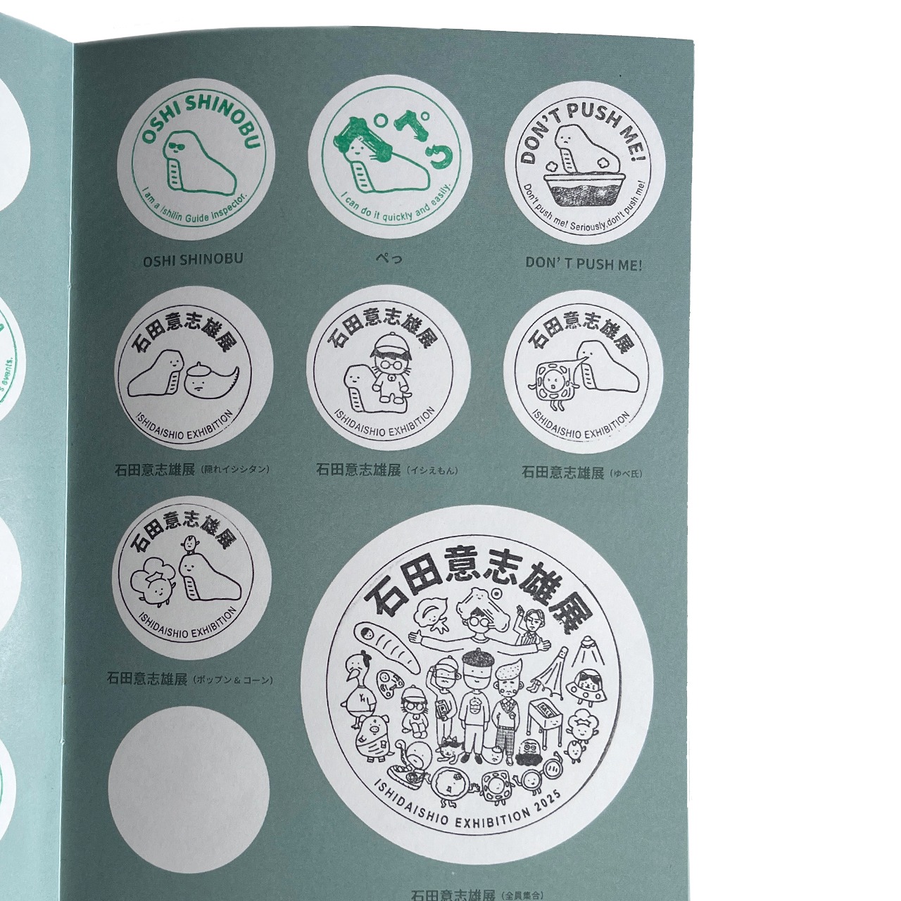 石田意志雄展2025の図録です。キャラクター紹介(主役級)、石形傑作集(問題作)、押し活パスポート(完全版)を収録しています。この1冊さえあれば、石田意志雄っぽさをなんとなくご理解いただけますし、後半の「押し活パスポート」は、2025年9月時点の全スタンプを押す場所が指定されたスタンプ帳になっていますので、押し活をいい感じに始めたい方にはぴったりです!図録のサイズはB6ですので持ち運びやすいですし、別売りのクリアファイル(A5サイズ)にすっぽり入りますので、併せてご購入されることをお勧めします(ハート)。