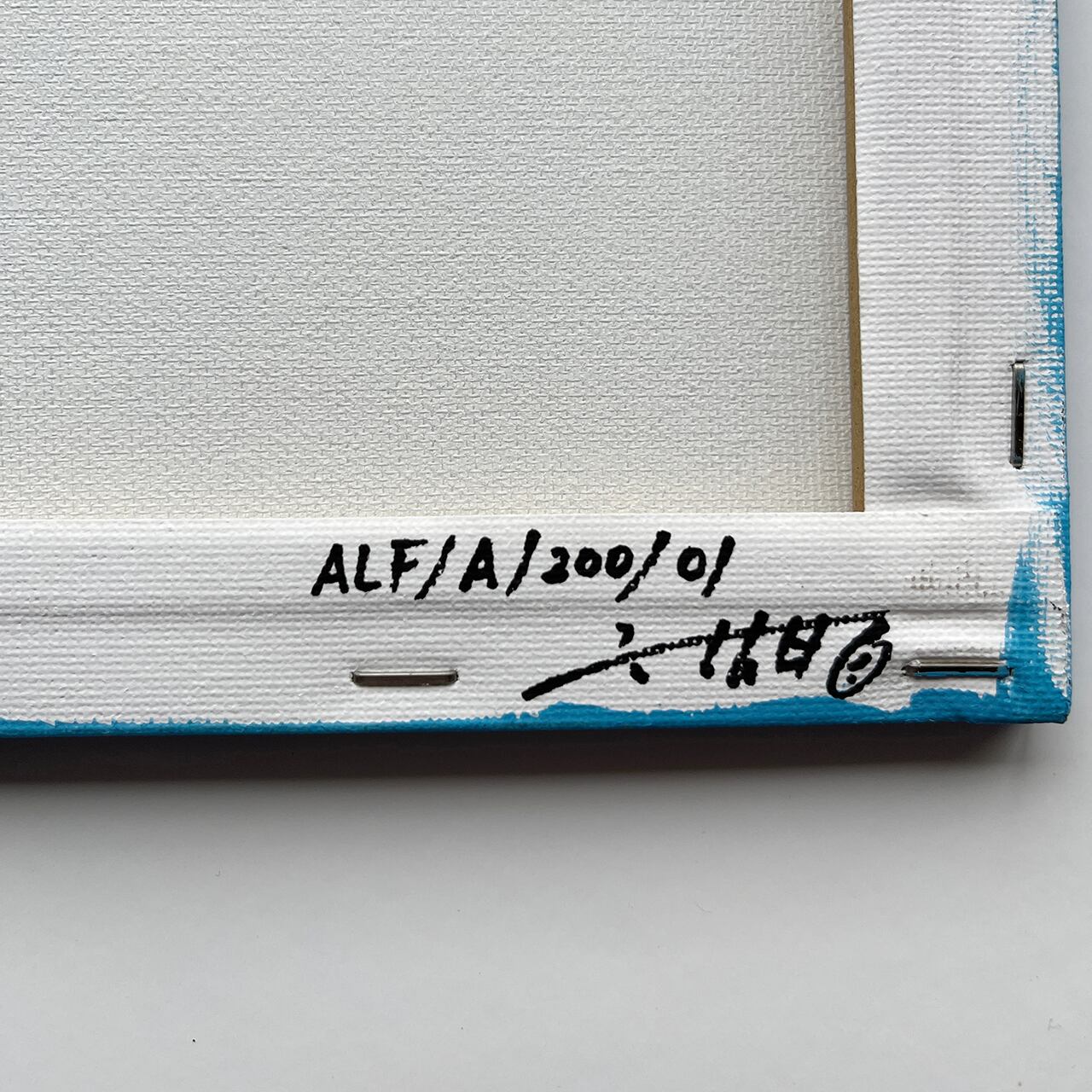 アシロングフォントキャンバス絵です。青空に赤色の『A』が飛んでいるような感じがする(気のせい)素敵な絵だと思います。愛や勇気を感じますね。