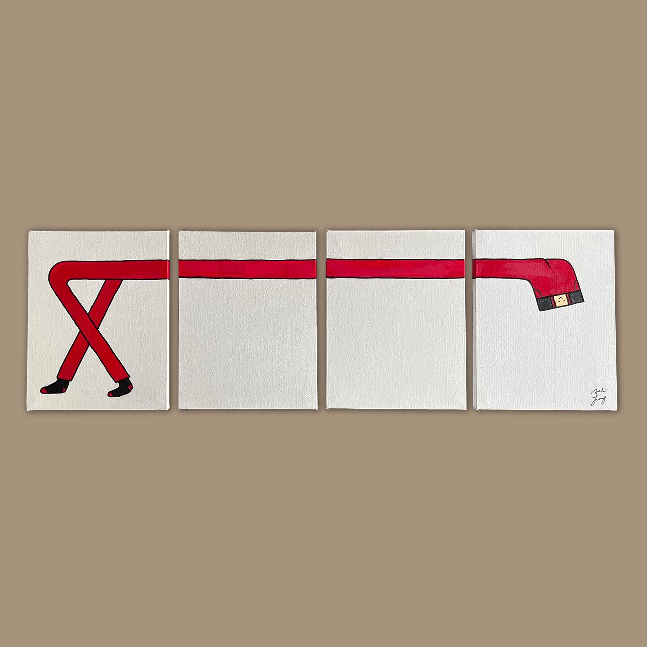 得意げなポーズをするアシロングくんの足の長さを拡張できるキャンバス絵です。この商品はF0サイズ(H180mm W140mm)の2枚セットですが、別売りの「アイロン台」の絵をお買い求めいただかないと、ただの赤い線の絵になってしまいますのでご注意ください。それはそれで素敵ですが。