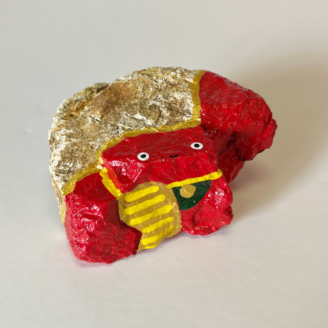 まるで石を宿にしたように見える招き宿借。石形は本来石の形を活かして作成するものです。この作品のように塗る必要のない部分があるのはまさにそういうこと。本来の技法を使ったトラディショナルな石形と言えます。じわじわきて可愛いですよ。