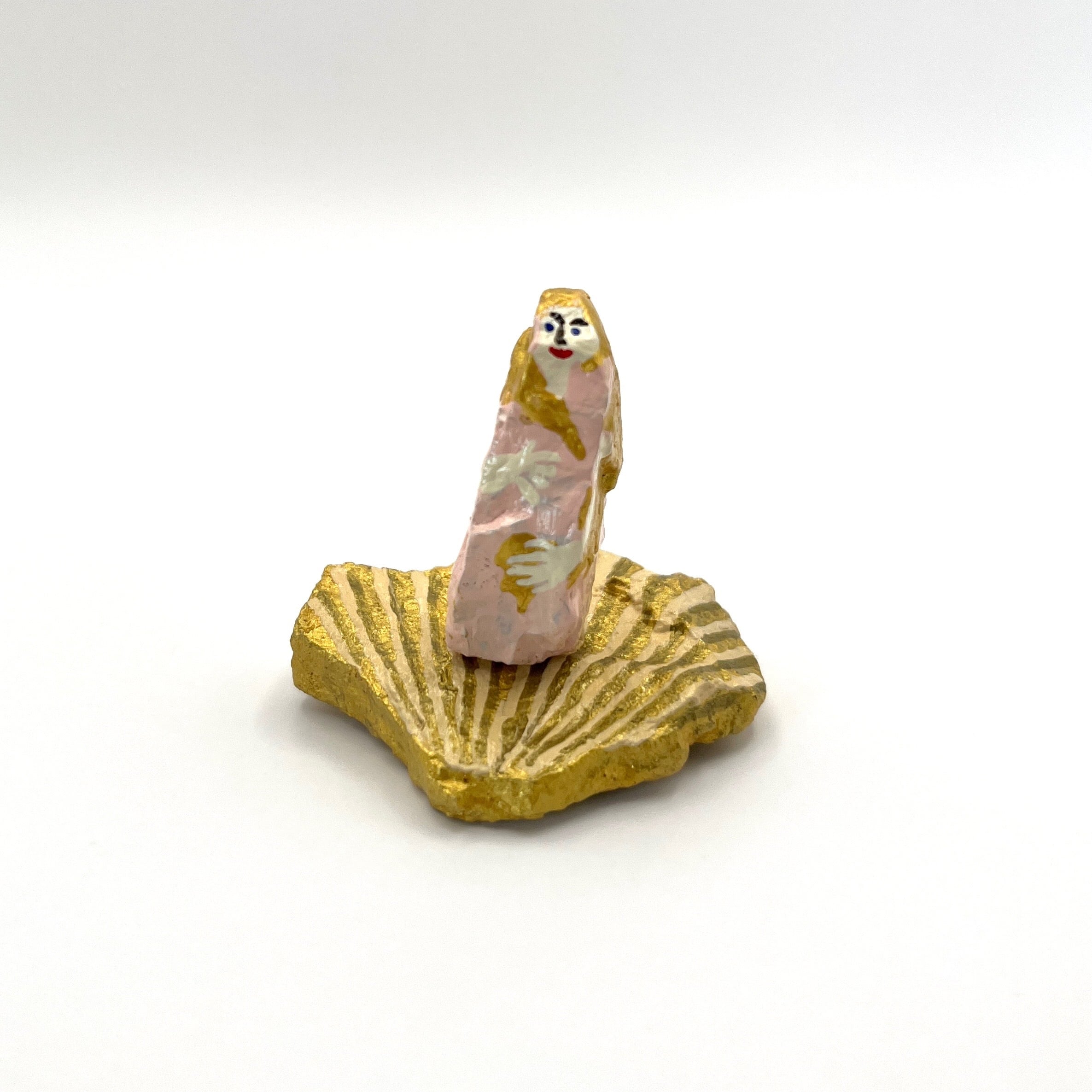 ホタテの貝殻に乗って海を漂っているヴィーナスを石形で表現しました。