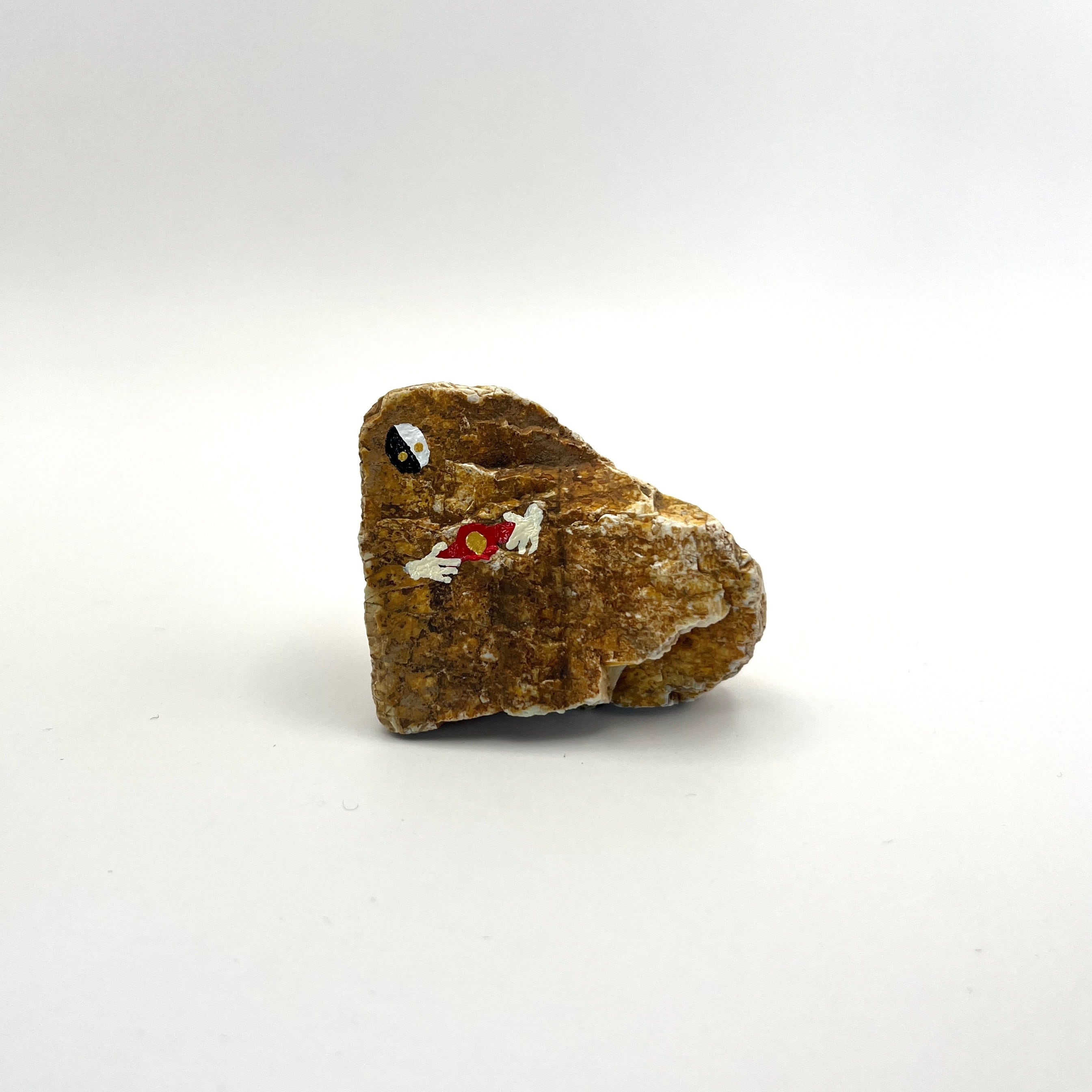 石形ヒーローシリーズ『Stone Man(ストーンマン)』の石形【中A】です。赤いベルトを身につけてヘビメタっぽいポーズをしているかと思いきや、アロハ的な指になっちゃってるストーンマンです。やながせ倉庫団地で販売している小サイズよりも少し大きいサイズとなります。指の形や顔の小ささなどは小サイズよりも丁寧に描かれていて、職人の腕が光る一品です。 ※1枚目の写真が商品となります。2枚目はStone Manのイメージです。
