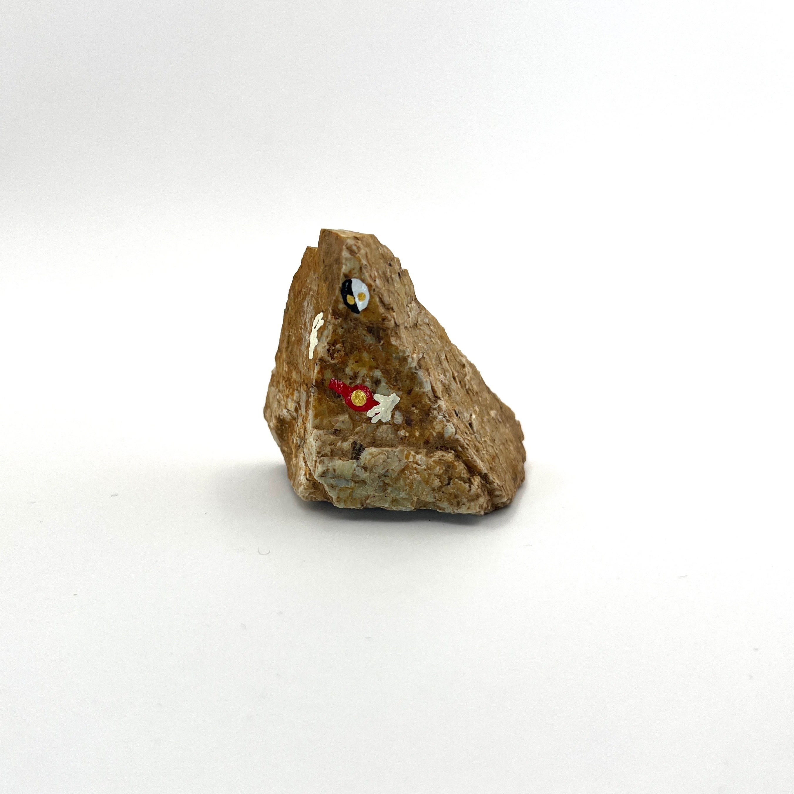 石形ヒーローシリーズ『Stone Man(ストーンマン)』の石形【中A】です。赤いベルトを身につけてヘビメタっぽいポーズをしているかと思いきや、アロハ的な指になっちゃってるストーンマンです。やながせ倉庫団地で販売している小サイズよりも少し大きいサイズとなります。指の形や顔の小ささなどは小サイズよりも丁寧に描かれていて、職人の腕が光る一品です。 ※1枚目の写真が商品となります。2枚目はStone Manのイメージです。